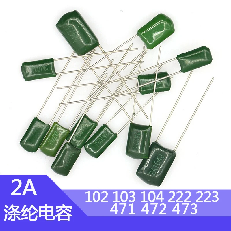 50pcs Polyester Film Capacitor 2A102J 2A103J 2A104J 2A221J 2A222J 2A223J 2A333J 2A472J 2A473J 100v 1NF 10NF 100NF 0.22NF 2.2NF