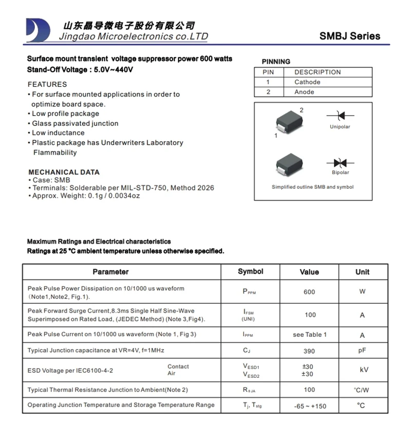 Be the first to review “50Pcs SMBJ200A PV Unidirectional SMB DO-214AA TVS Transient Suppression Bipolar in Stock Wholesale” Cancel reply
