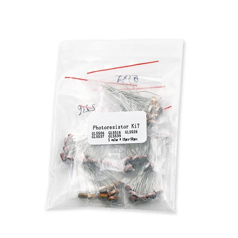 50PCS=5value*10pcs LDR Photoresistor DIY KIT GL5506 GL5516 GL5528 GL5537 GL5539 Resistor Resistance Packaging Set
