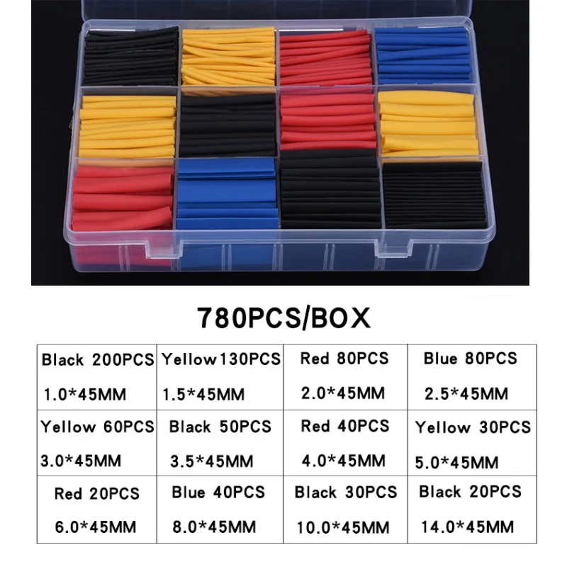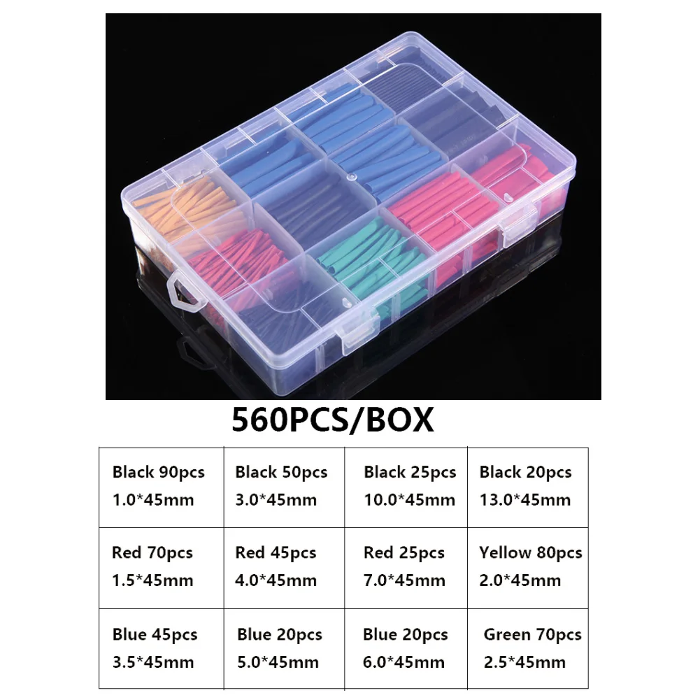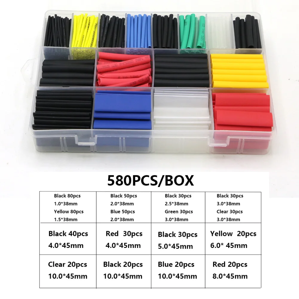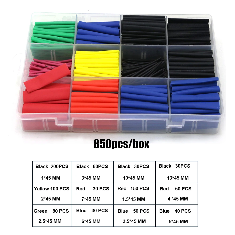 530/560/580/850pcs Thermoresistant tube heat shrink tubing, Insulation Sleeving Polyolefin 2:1 Shrink wrapping Assorted box kit