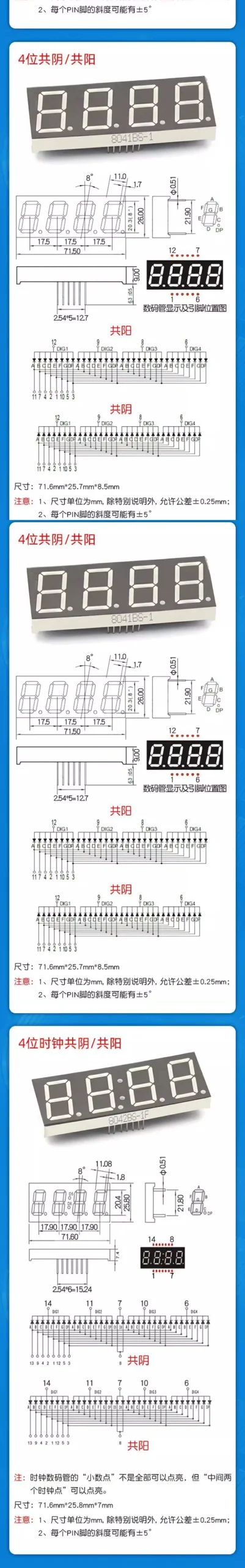 5Pcs 0.28 Inch Digital Tube LED Display 1Bit 2Bit 3Bit 4Bit Display Common Anode / Cathode 0.28″/0.36″/0.4″/0.56″ 7 Segment Red