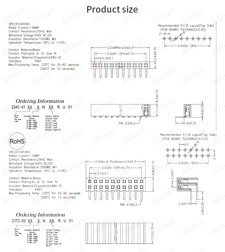 | Pins | 5PCS 2X40, 5PCS 2X3, 5PCS 2X4, 5PCS 2X5, 5PCS 2X6, 5PCS 2X8, 5PCS 2X10, 5PCS 2X20 |