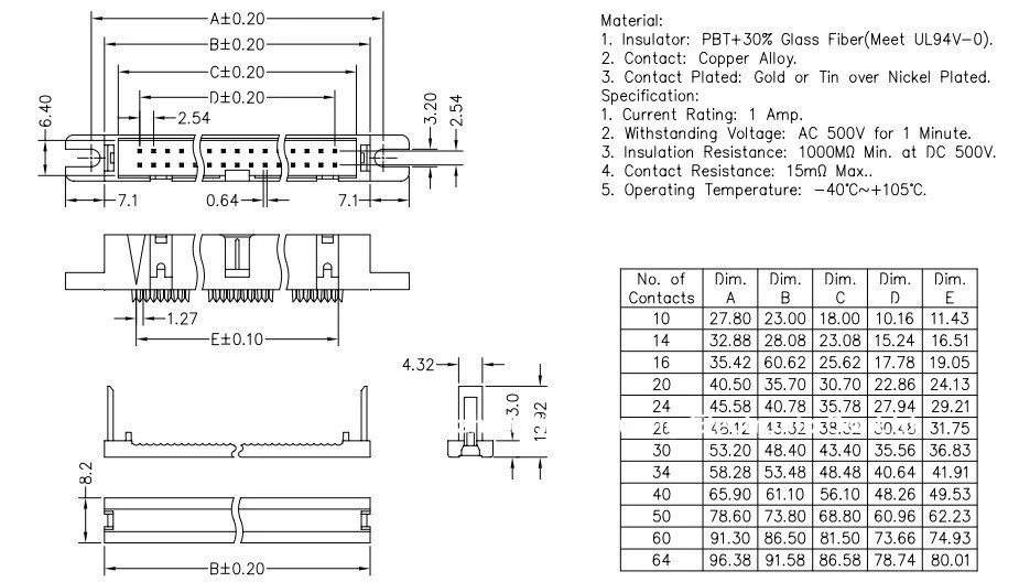 | Pins | 2X8 16PIN, 2X10 20PIN, 2X4 8PIN, 2X5 10PIN, 2X7 14PIN, 2X17 34PIN, 2X20 40PIN, 2X13 26PIN, 2X15 30PIN, 2X25 50PIN |
