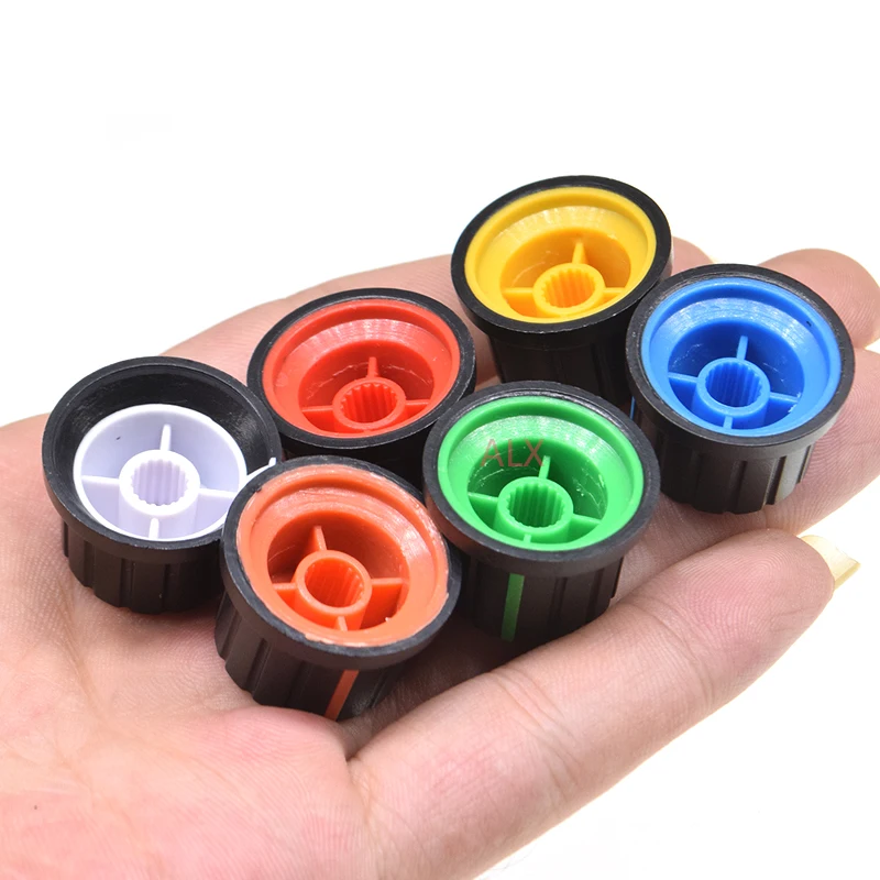 5PCS 6mm Shaft Hole Dia Plastic Threaded Knurled Potentiometer Knobs Caps wh148 switch cap