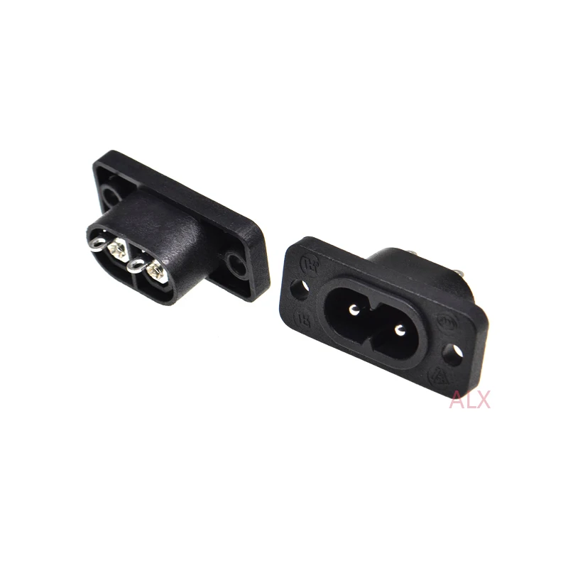 C8 male plug, 2-round terminals, plastic material construction, long using life.