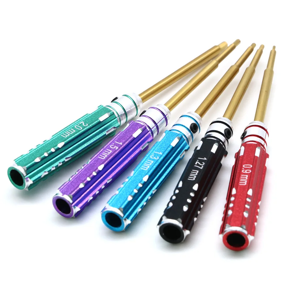 5pcs/set RC Mini 0.9mm 1.27mm 1.3mm 1.5mm 2.0mm Hex Screw Driver Set Titanium Screwdriver for Axial SCX24 1/24 RC Crawler Truck