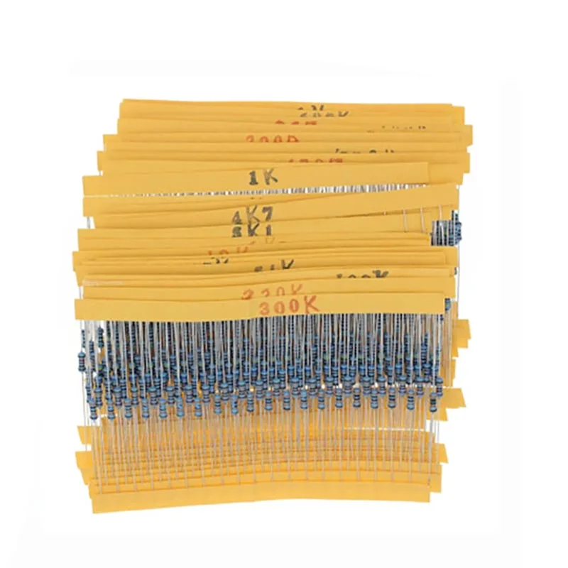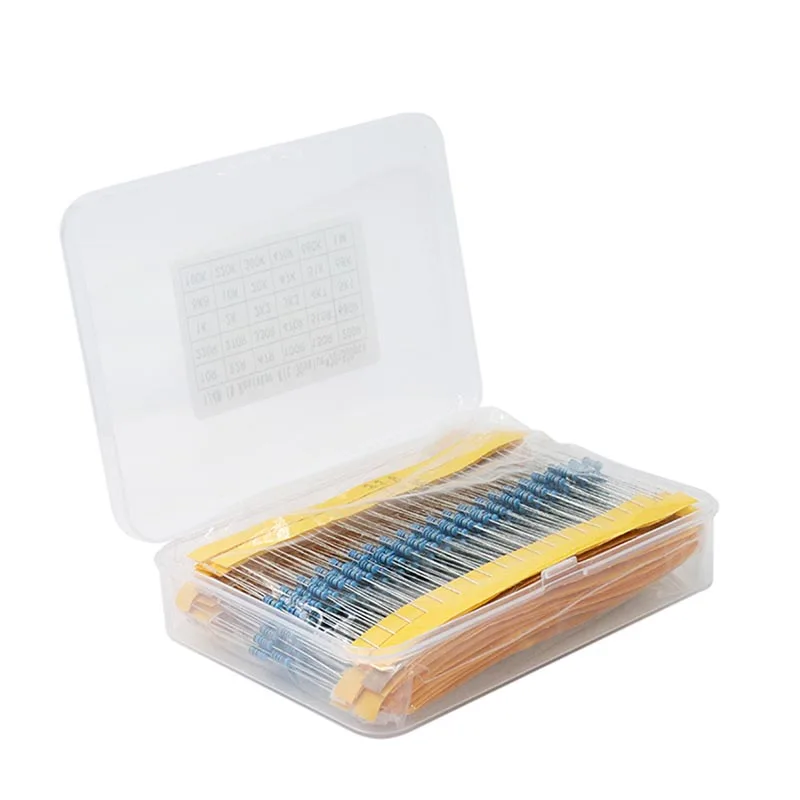 600PCS 1/4W Metal Film Resistor 30 Values Resistance Kit 10R-1M 100R 220R 1K 2.2K 3.3K 4.7K 10K 0.25W 1% Resistors Set With Box