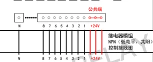 Input terminal: three -24V are all common points, randomly choose one connection, connected to the positive charge, 1-N to the negative charge control.