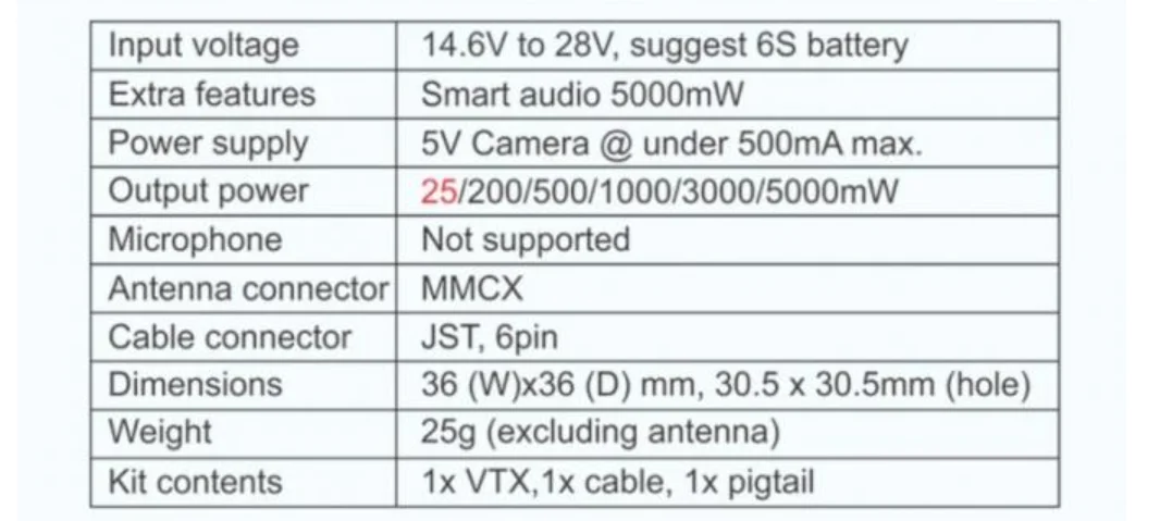 Upgrade Parts/Accessories: 5W 80CH VTX