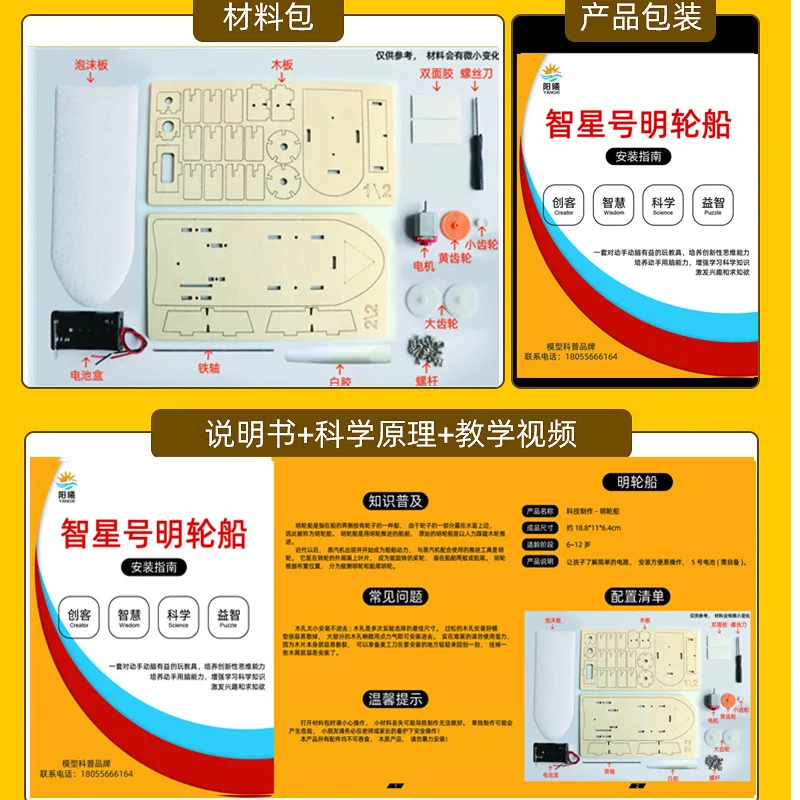 DIY Boat Model Material Set Wood Boat Building Kit 3D Assemble Wooden Paddle Steamer Creative Teaching Educational Science