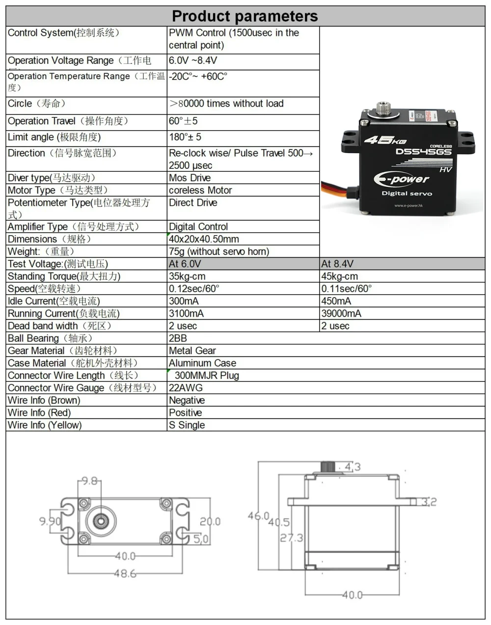 EP Waterproof Servo DS535GS DS545GS 35KG 45KG High Speed Metal Gear Digital Servo Baja Servo for 1/8 1/10 Scale RC Cars