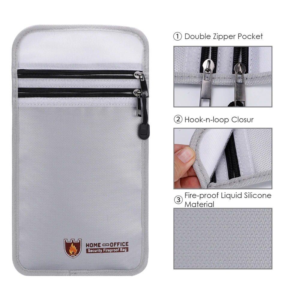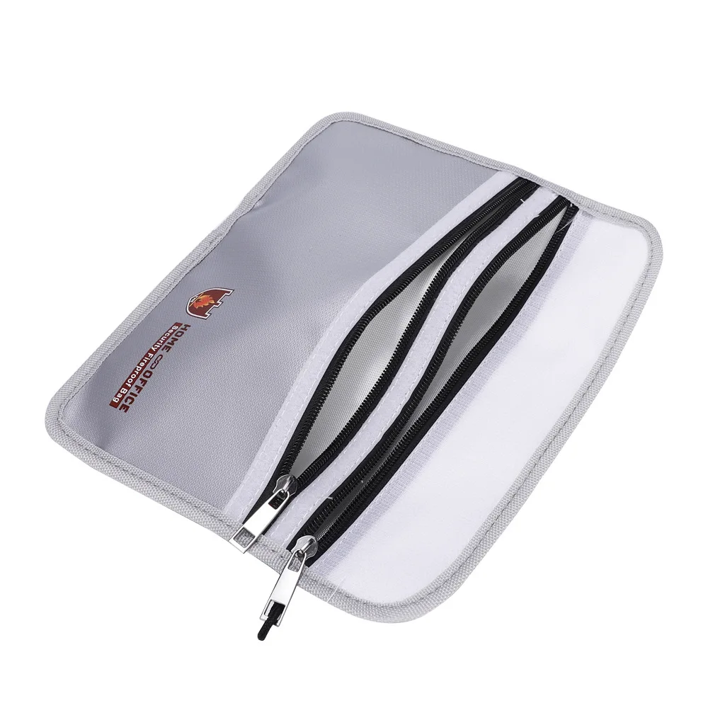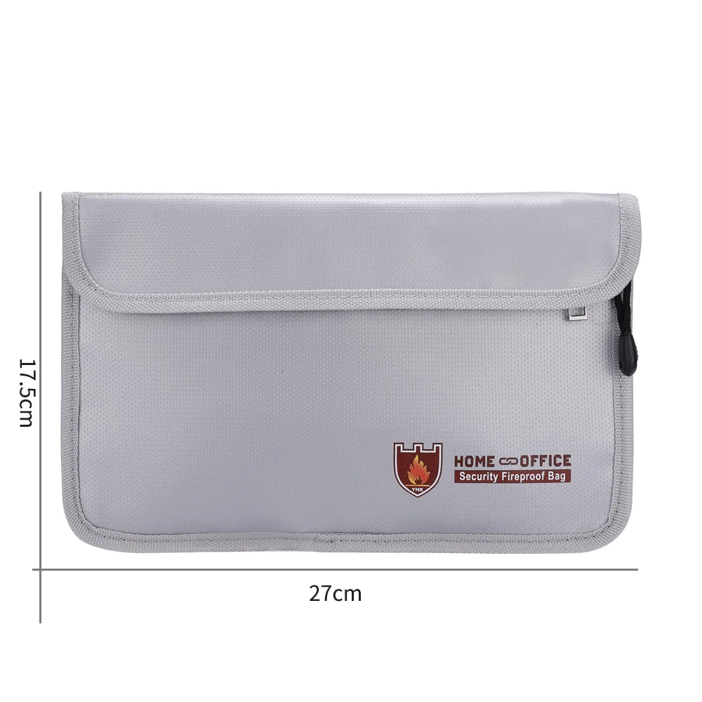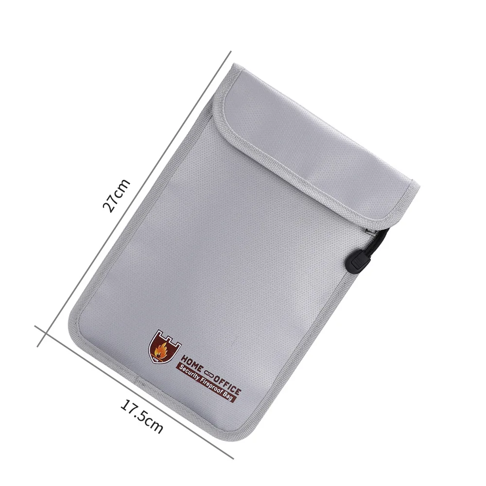 Fireproof Money Safe Bag Fire & Water Resistant Dual-Pocket Zipped Document Bag Safe Pouch 27×17.5mm