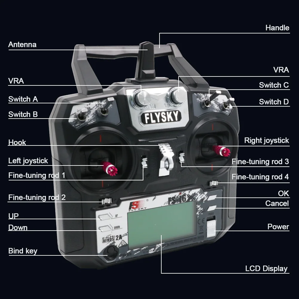 1X Flysky FS-i6X 10CH 2.4GHz AFHDS 2A RC Transmitter