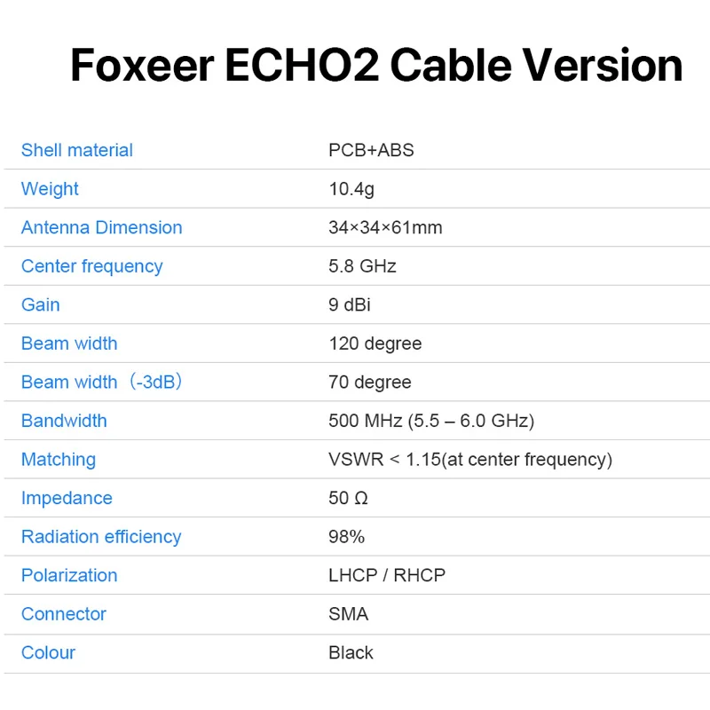 Be the first to review “FOXEER ECHO 2 V2 5.8GHz 9dBi Patch Antenna LHCP RHCP for RC Airplane FPV Freestyle Drones VTX VRX Goggles Monitor” Cancel reply