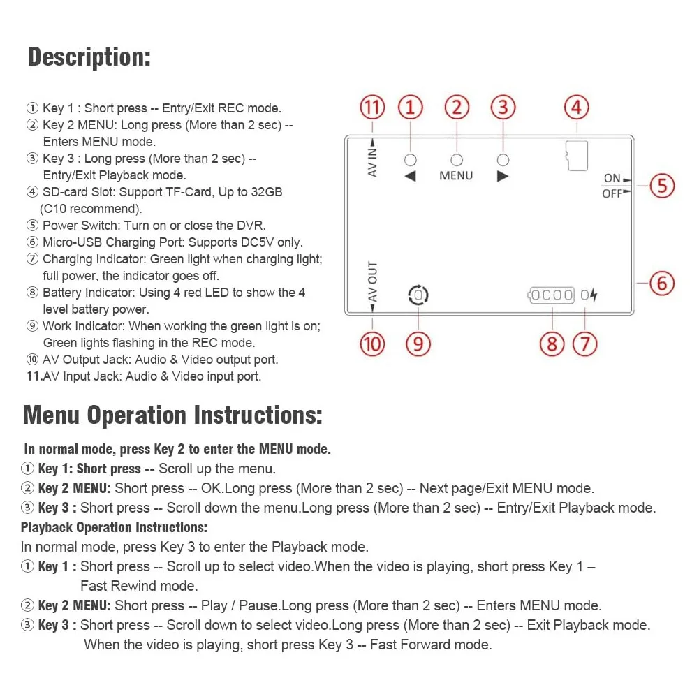 * Support 32GB TF card (10 level recommended);