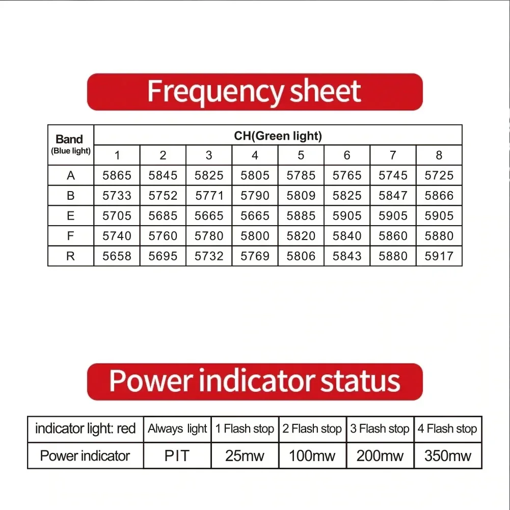 | Color | 2.5w VTX, 1.6w VTX, 800mw VTX, 300mw VTX |