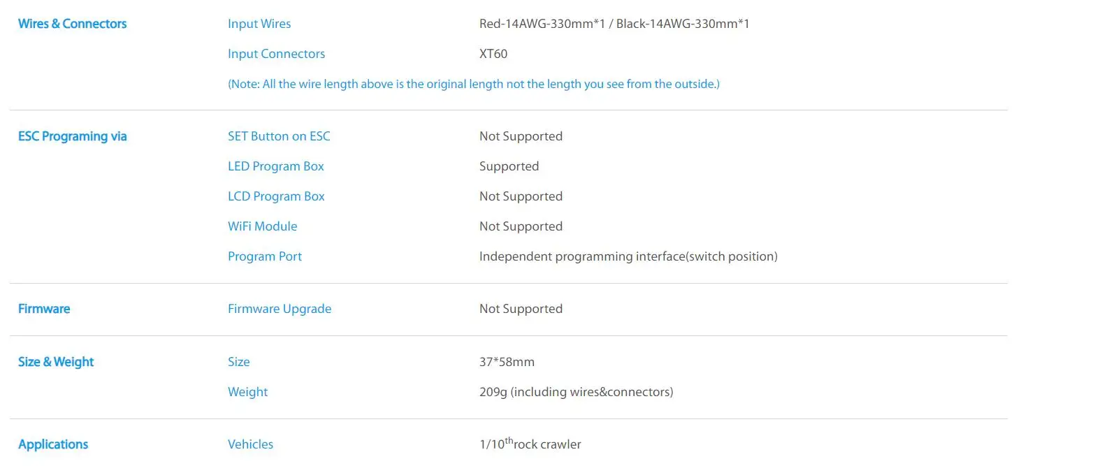 Four-wheel Drive Attributes: 60A ESC