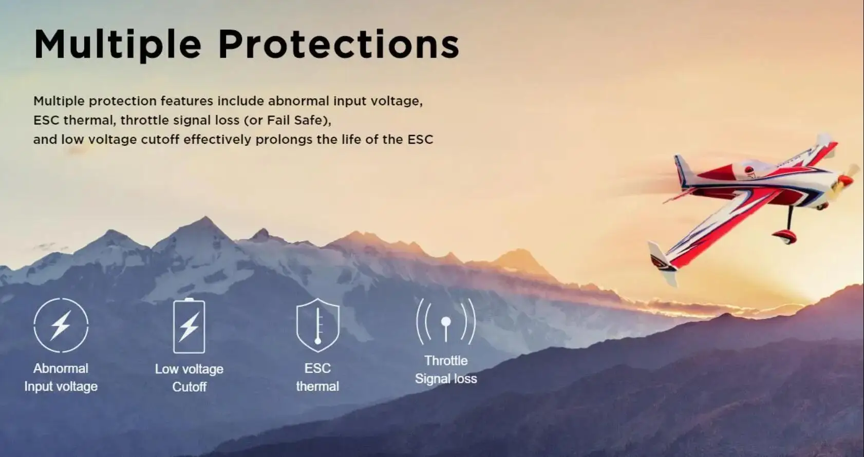 ESC thermal, throttle signal loss (or Fail Safe), and low voltage cutoff effectively