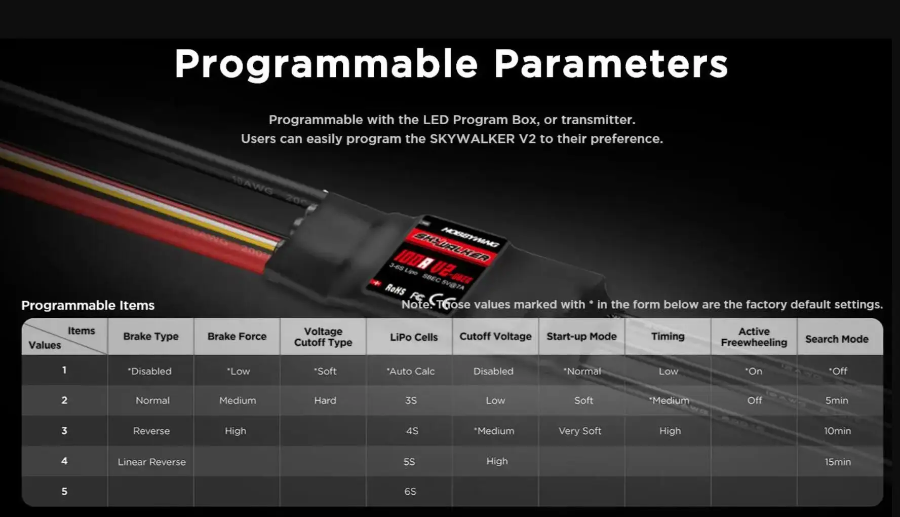 | Color | Skywalker 120A V2, Skywalker 130A OPTO, Skywalker 80A V2, Skywalker 160A OPTO, Skywalker 100A V2, Skywalker 30A V2, Skywalker 20A V2, Programe Card, Skywalker 60A V2, Skywalker 50A V2, Programe CardA, Skywalker 40A V2, Skywalker 15A V2 |