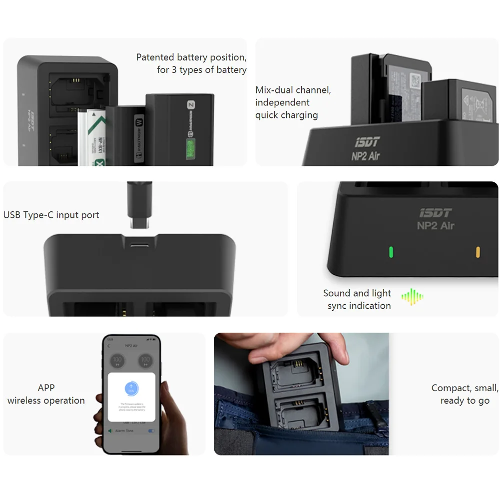 ISDT NP2 Air 25W Mix-Dual Channel Charger for SONY Digital Imaging Equipment NP-BX1 NP-FZ100 NP-FW50 Battery