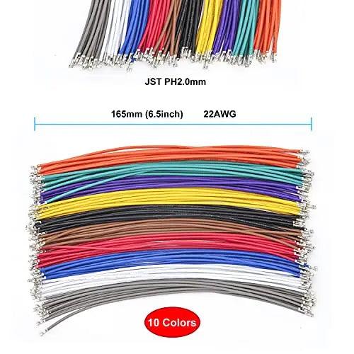 PH 2.0mm JST Connector Socket Kit with Pre-Crimped Cables Wire 2/3/4/5/6/7/8/9/10 Pin 22AWG Wire 10 Colors 165mm