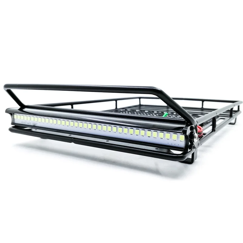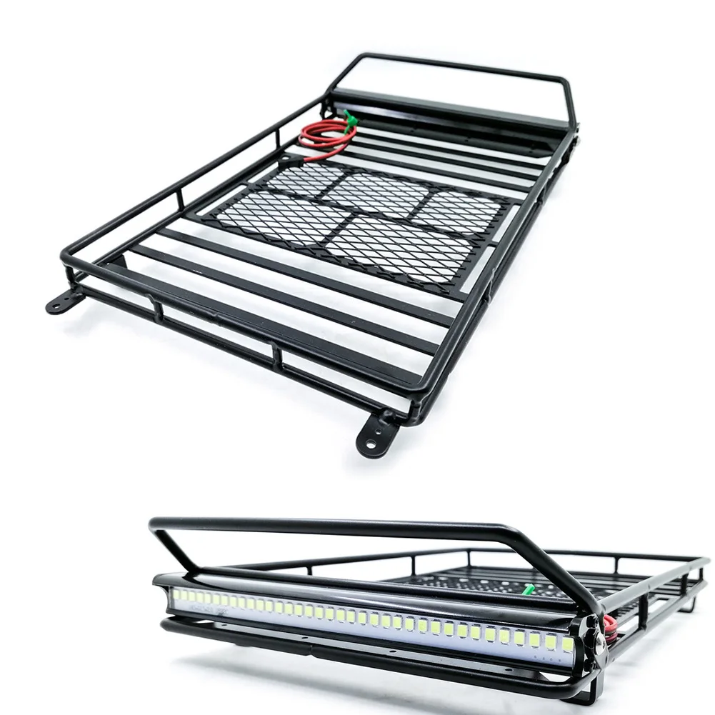 Large Size Luggage Carrier Roof Rack with LED Light Bar for 1/10 RC Crawler Car Axial SCX10 90046 Traxxas TRX4