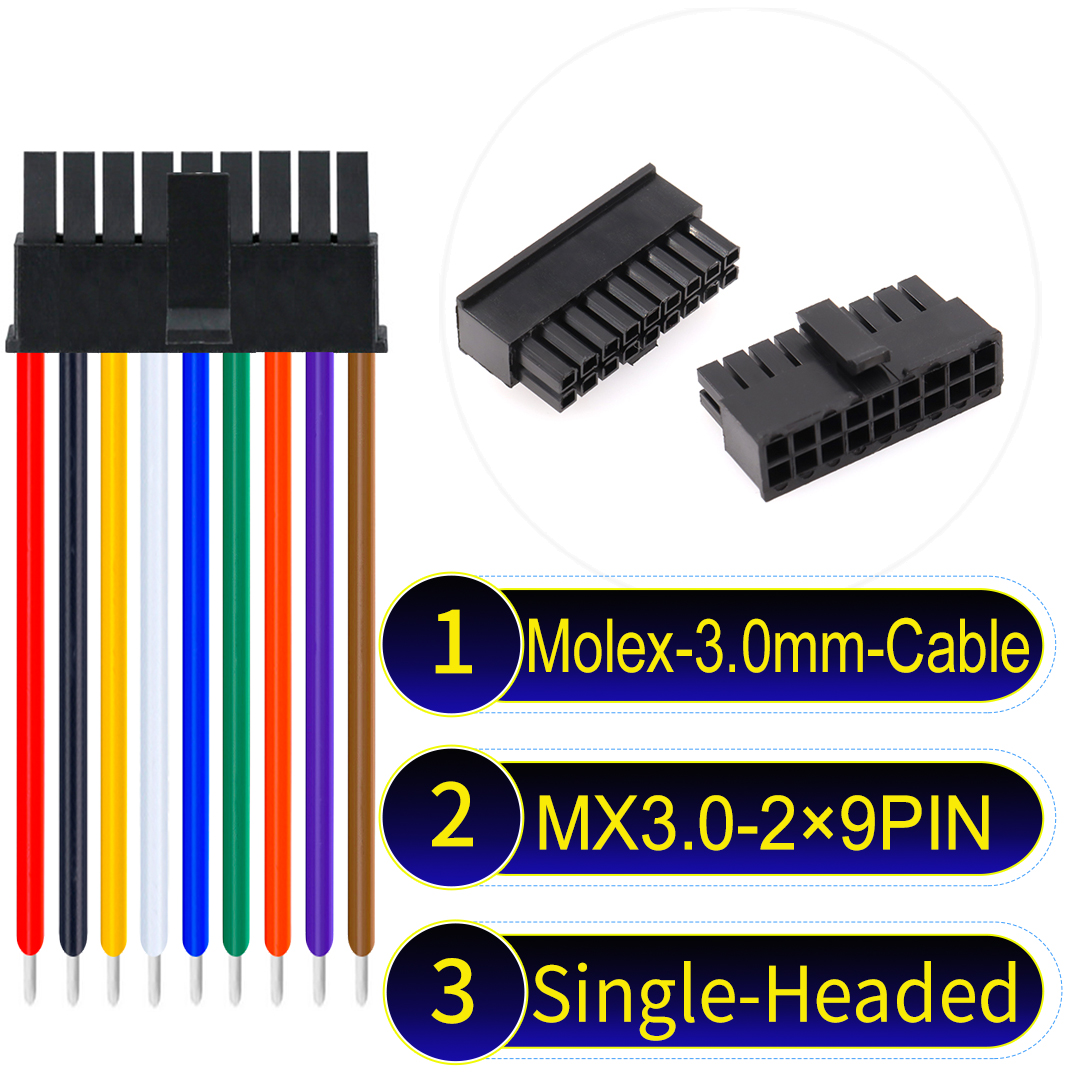 | Model: Molex MX3.0mm Dual Row 2×9Pin Male Single-Headed Cable |