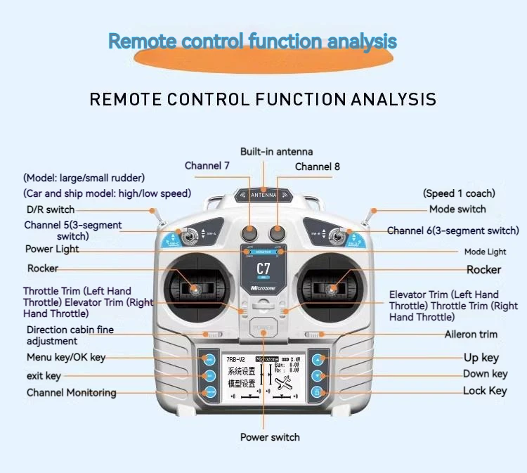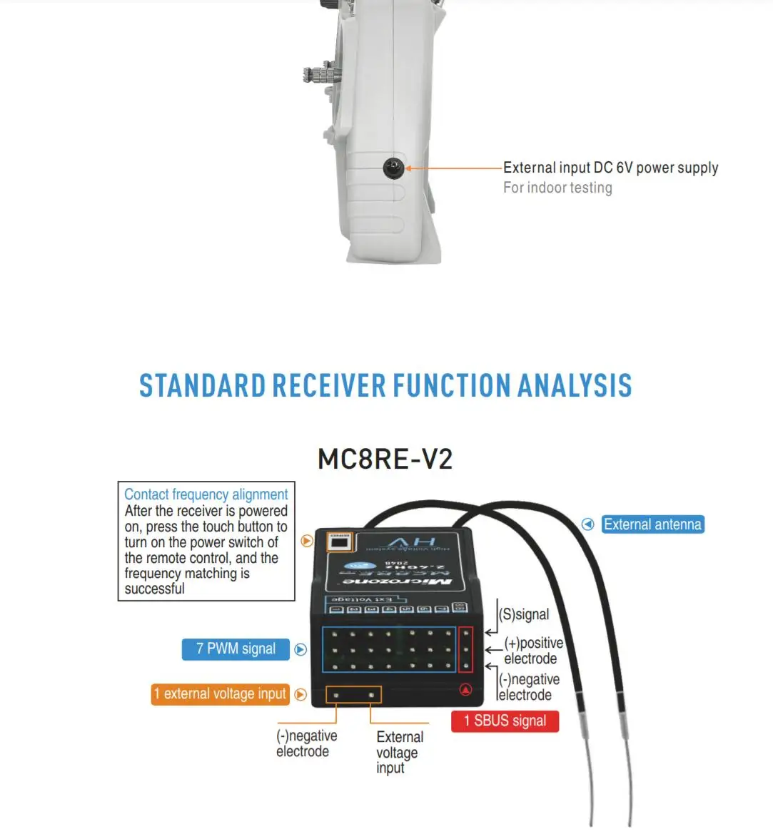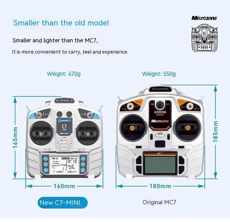 MicroZone MC7 C7 MINI 2.4G Controller Transmitter with MC8RE Receiver Radio System for RC Aircraft Drones Multirotor Helicopters