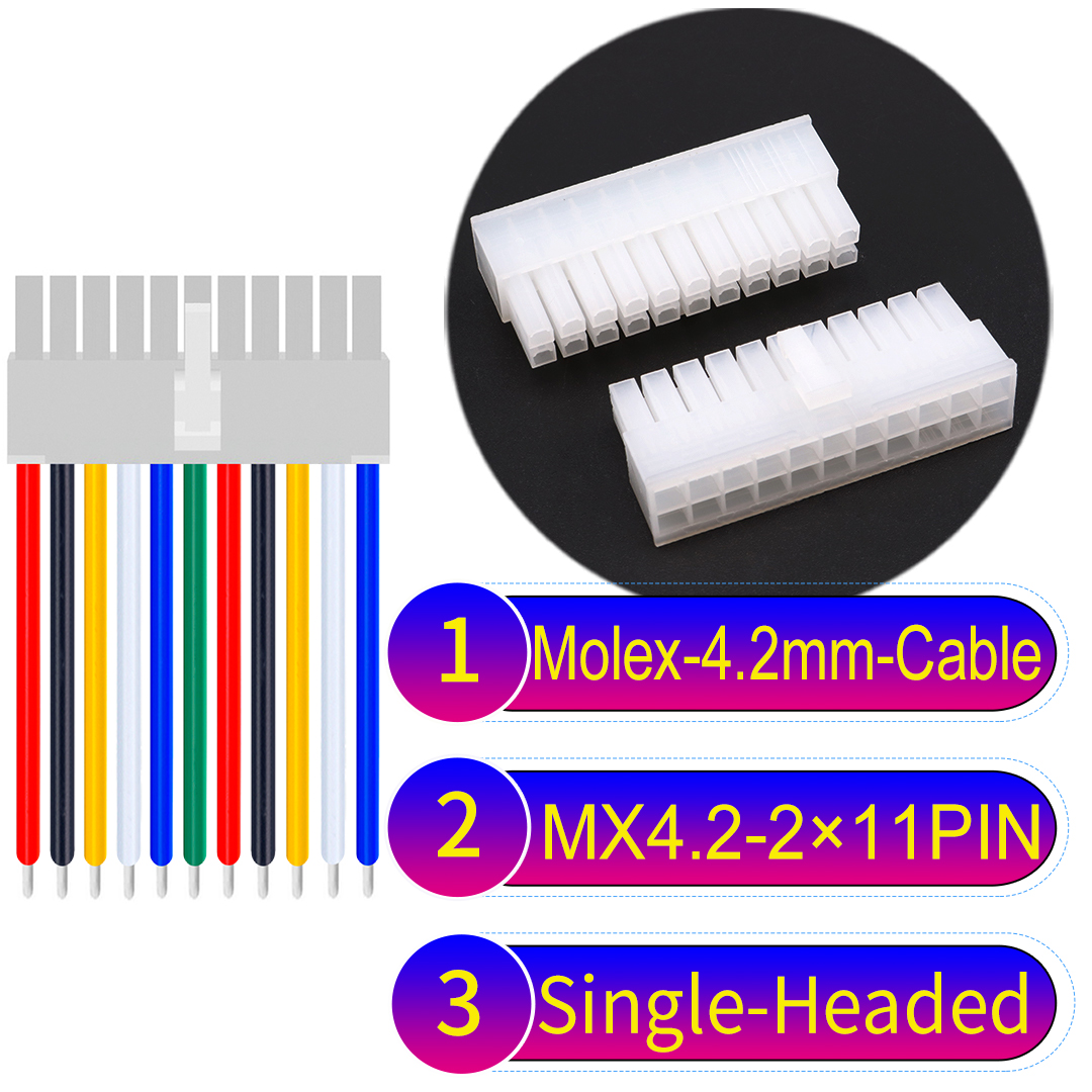 | Model: Molex MX4.2mm Dual Row 2×11Pin Mini-Fit Jr Male Single-Headed Cable |