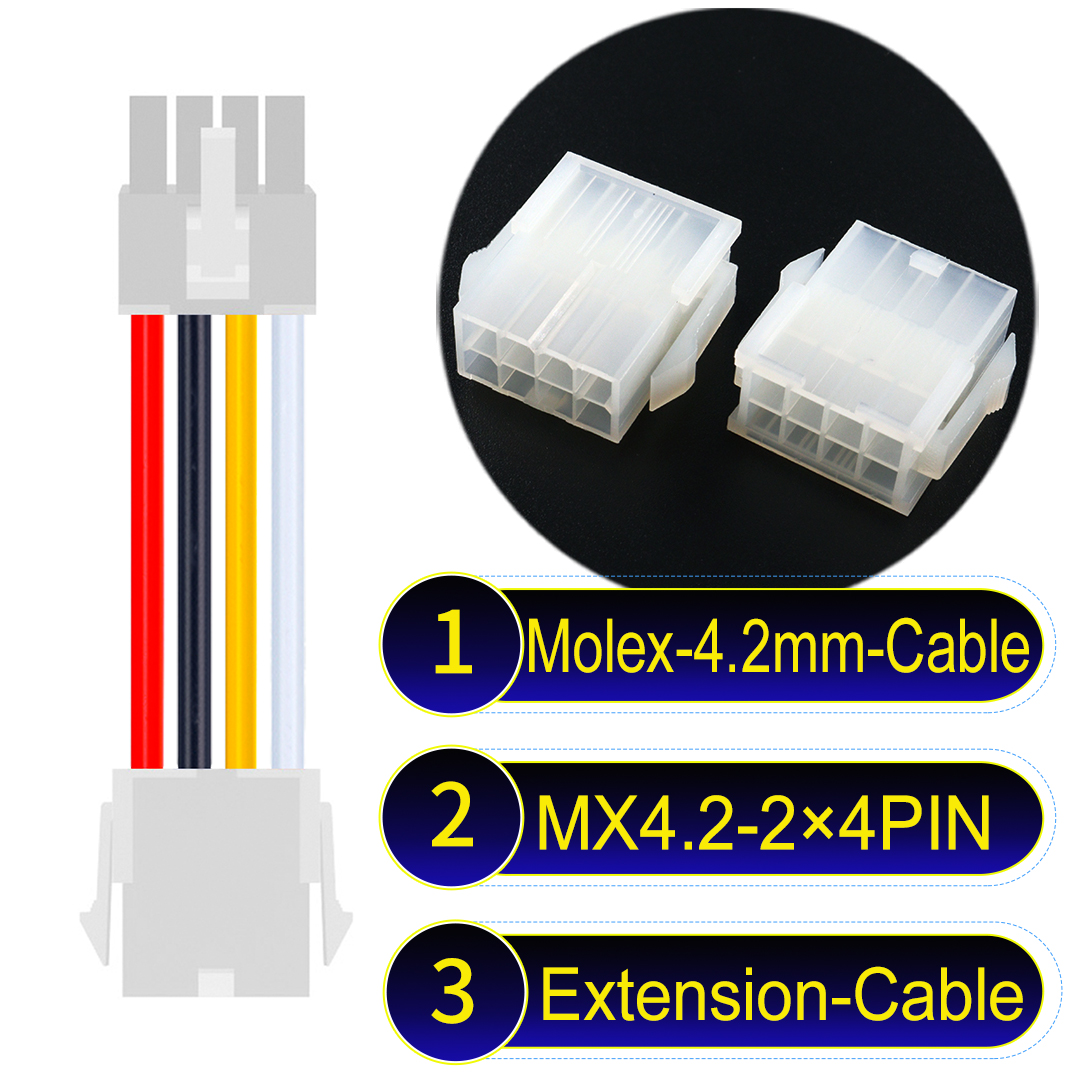| Model: Molex MX4.2mm Dual Row 2×4Pin Mini-Fit Jr Male Female Extension cable |