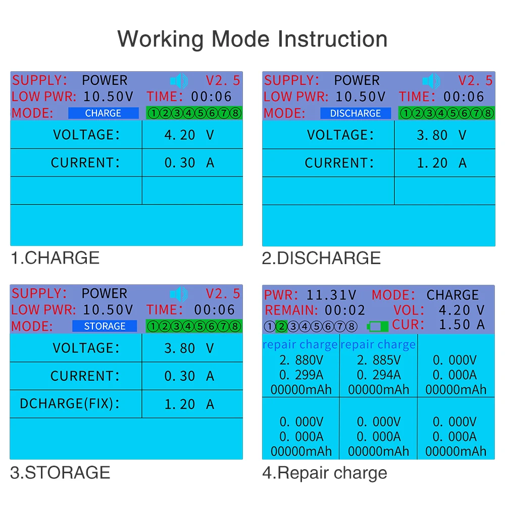 Working Modes: Charge/Discharge/Storage/Repair charge