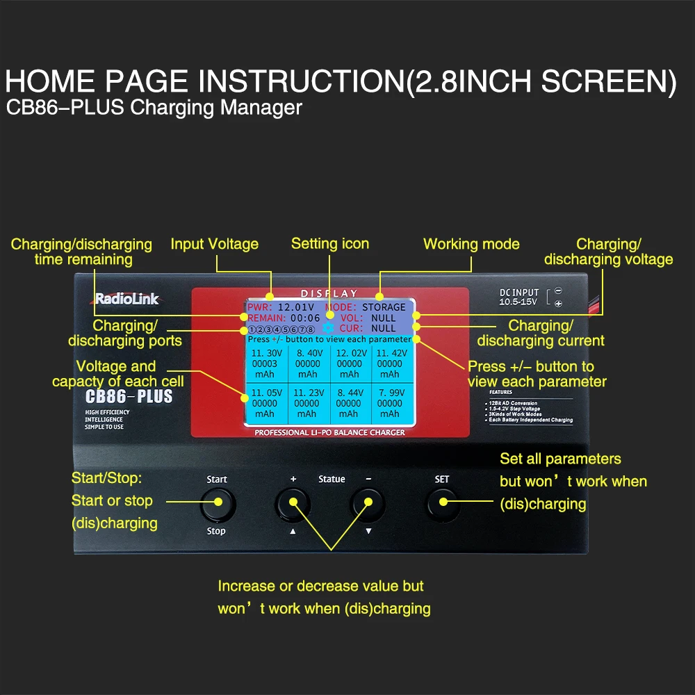 Radiolink Balance Charger CB86 Plus for 8pcs 2-6S Lipo Battery at one time Professional For RC Lipo Battery