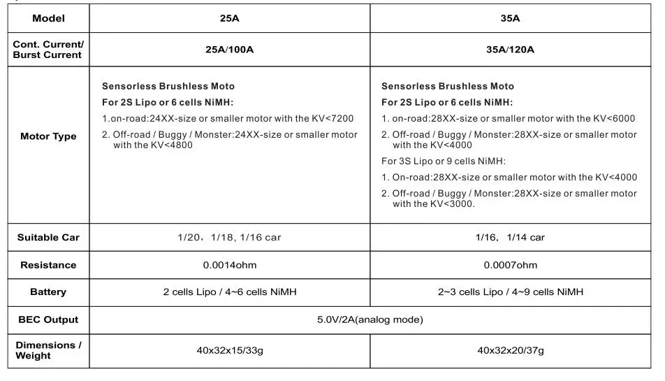 | Color | 80A ESC, 150A ESC, 60A ESC, 25A ESC, 120A ESC, 35A ESC, 45A ESC |