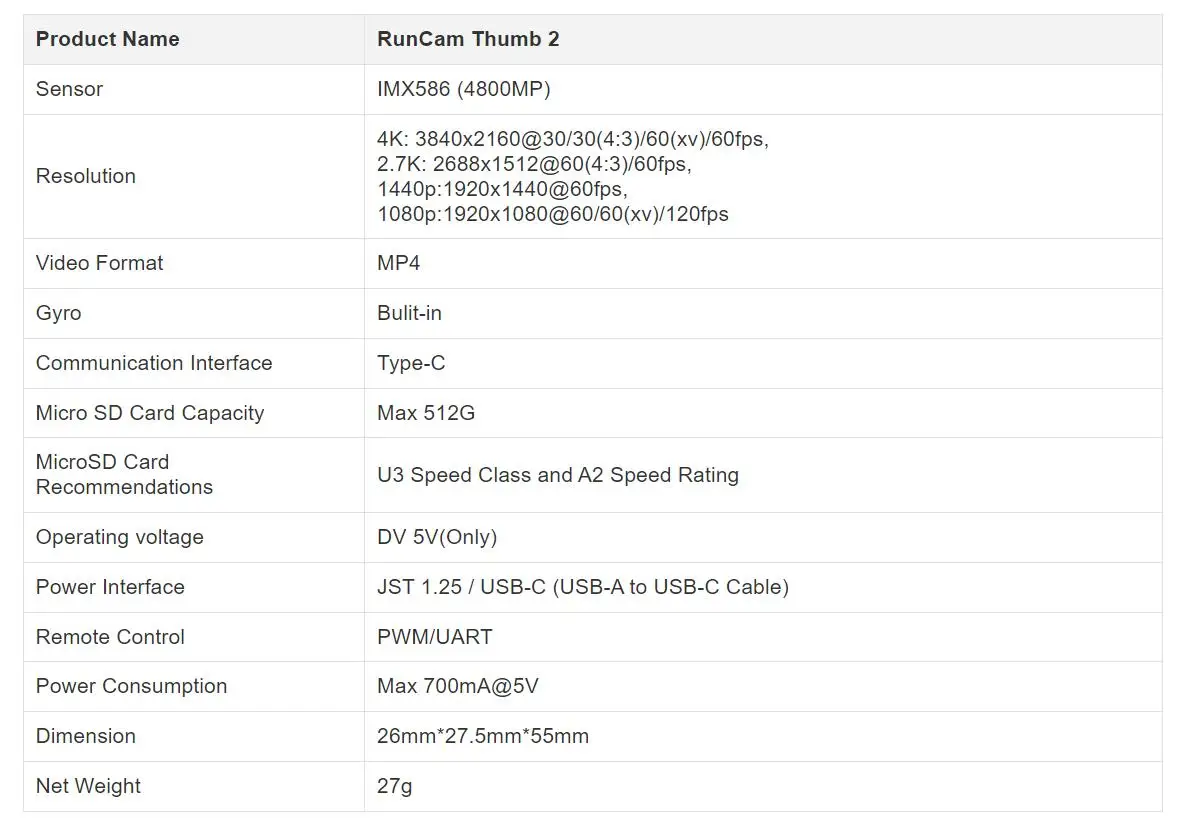 Upgrade Parts/Accessories: RunCam Thumb 2