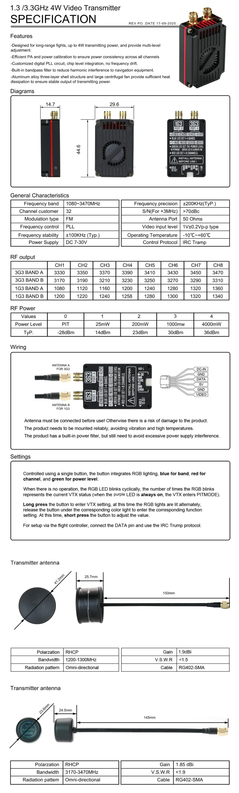 Type: 1.3G 4W VTX