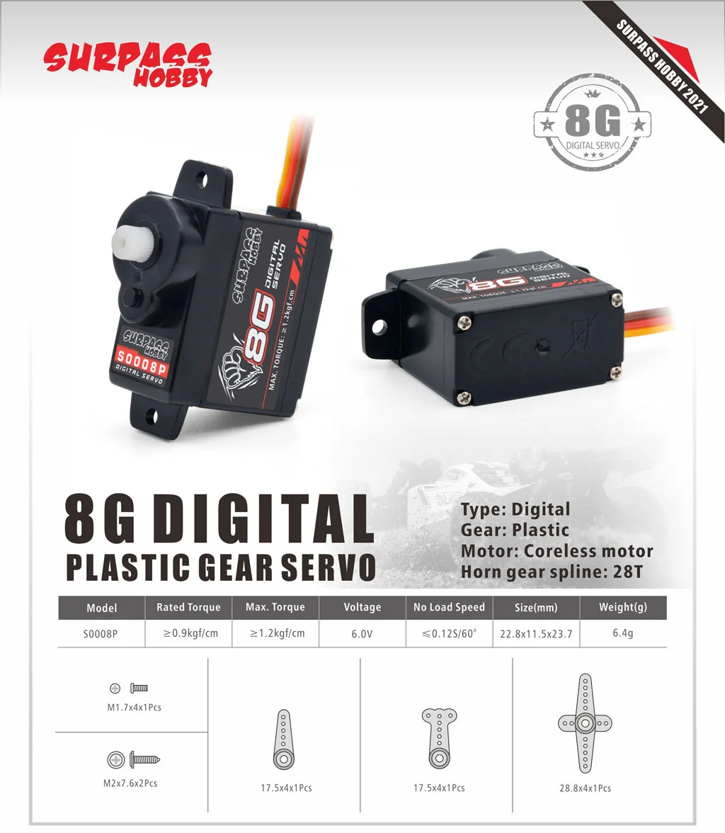 Surpass Hobby 2g 3.7g 4.3g 6g 8g Micro Digital Mini Servo Metal and Plastic Gear for Rc Drone Airplane Fixed-wing Car Robot
