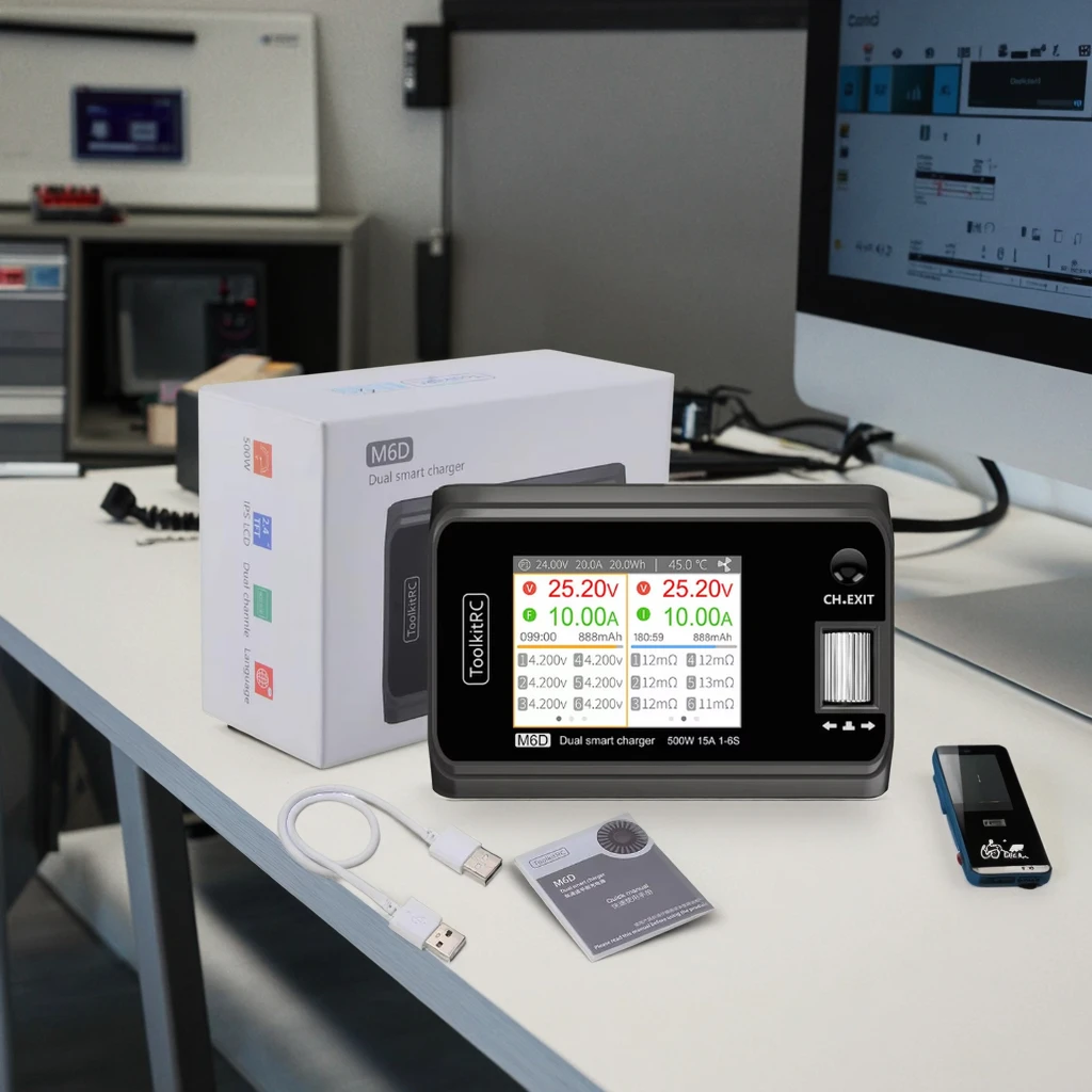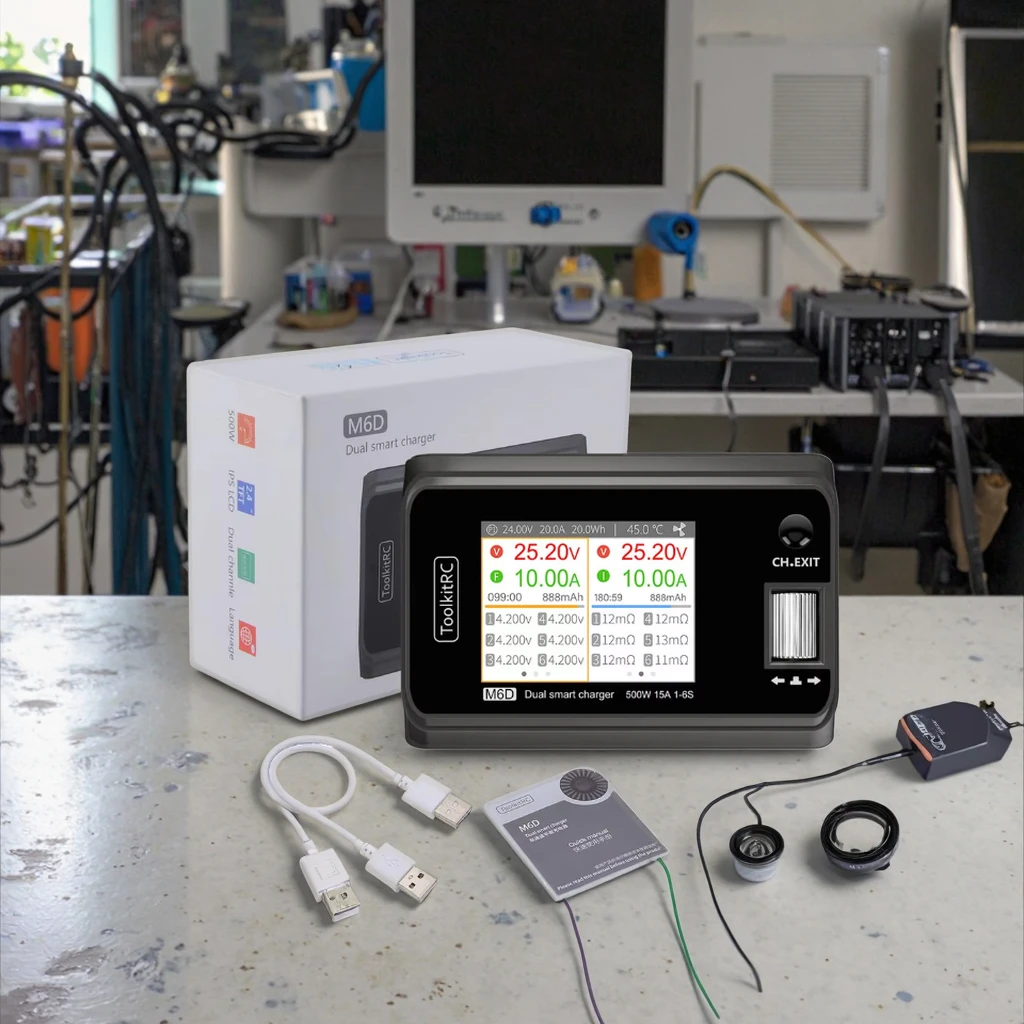 ToolkitRC M6D 500W 15A DC Dual Channel MINI Smart Charger Discharger with Power Supply For 1-6S Lipo Battery FPV Model Vs M8