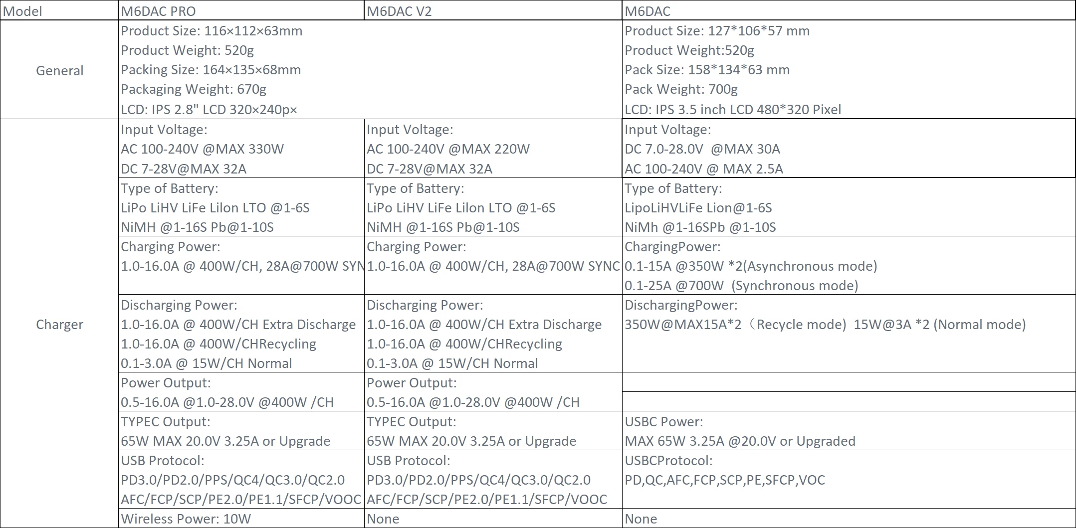 | Color | EU M6DAC Pro, EU M6DAC V2, US M6DAC Pro, US M6DAC V2 |