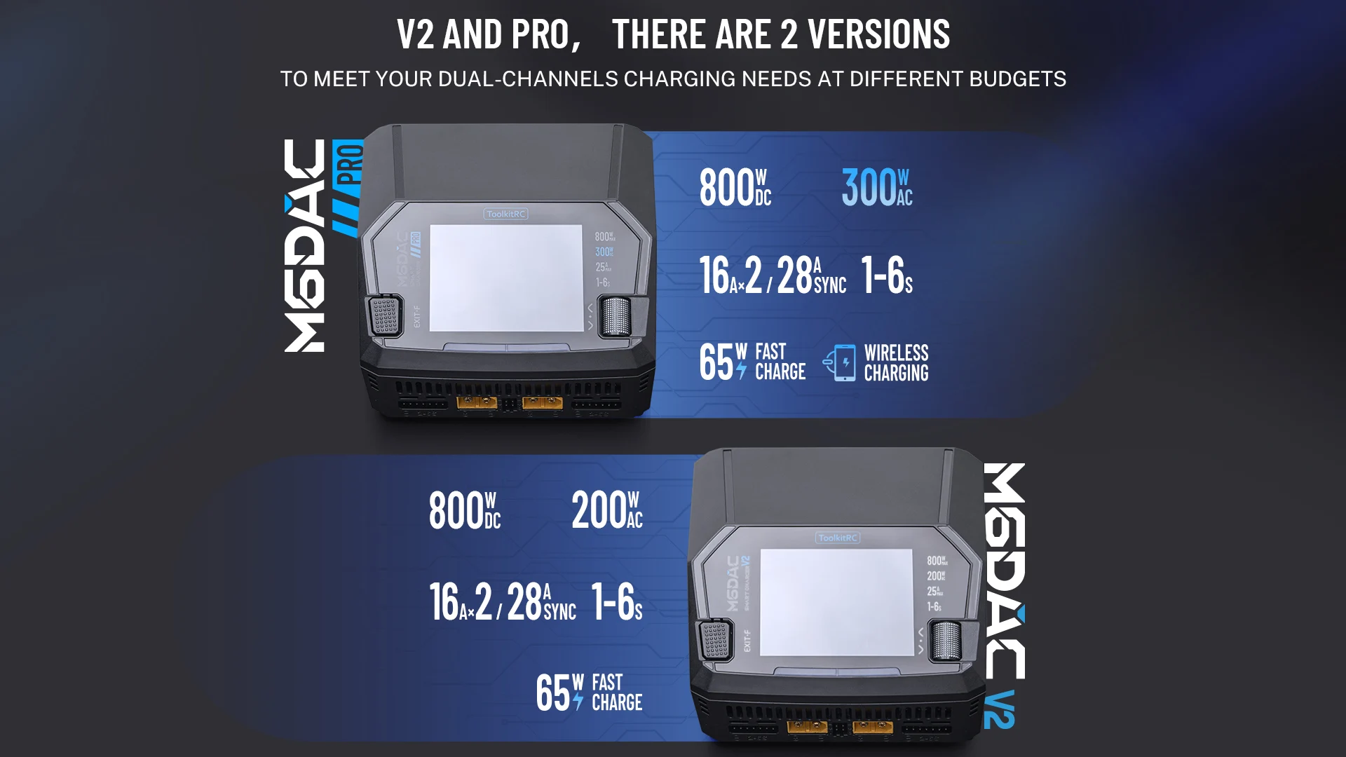 ToolkitRC M6DAC Pro AC300W / M6DAC V2 AC 200W Dual Channel Smart Lipo Battery Charger Discharger DC 400WX2 16AX2 for 1-6S LiHV