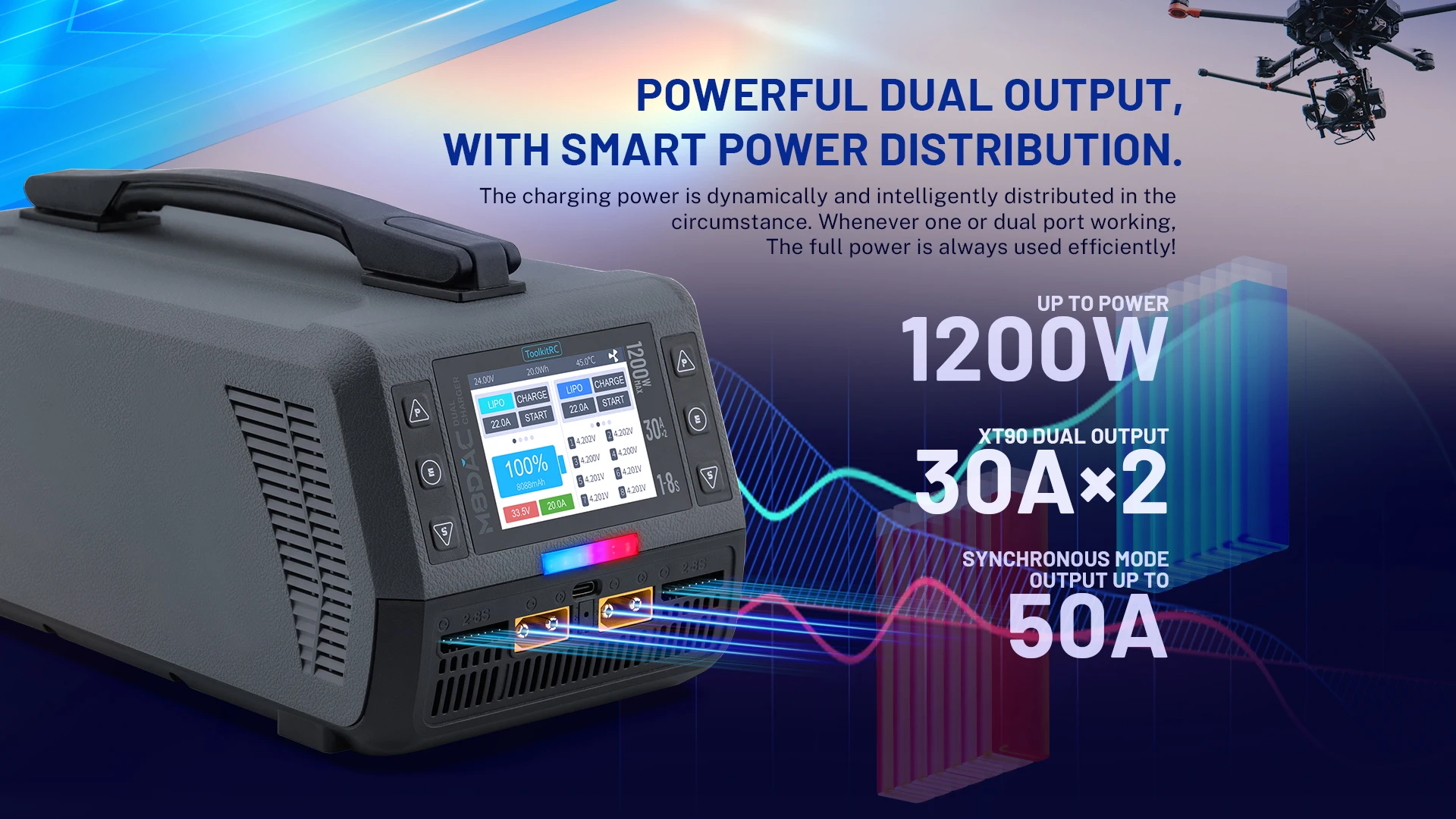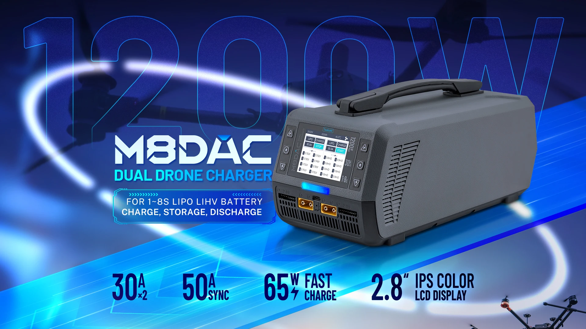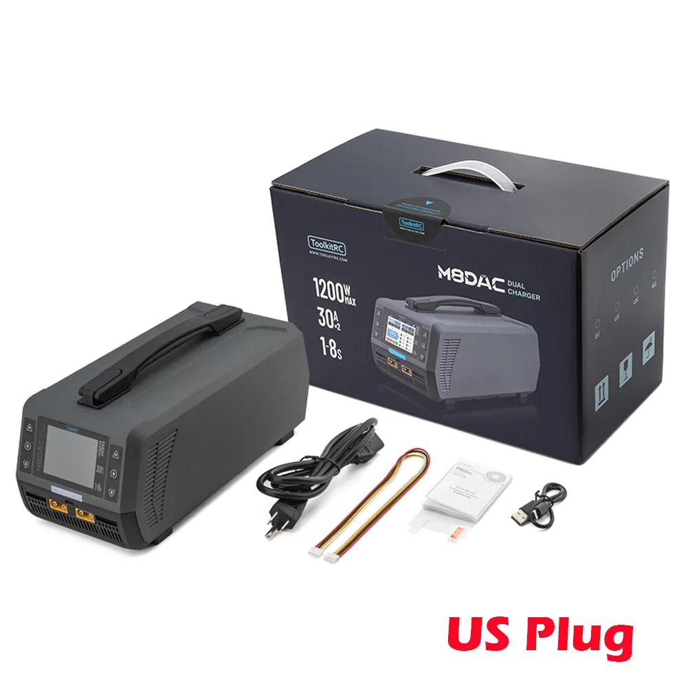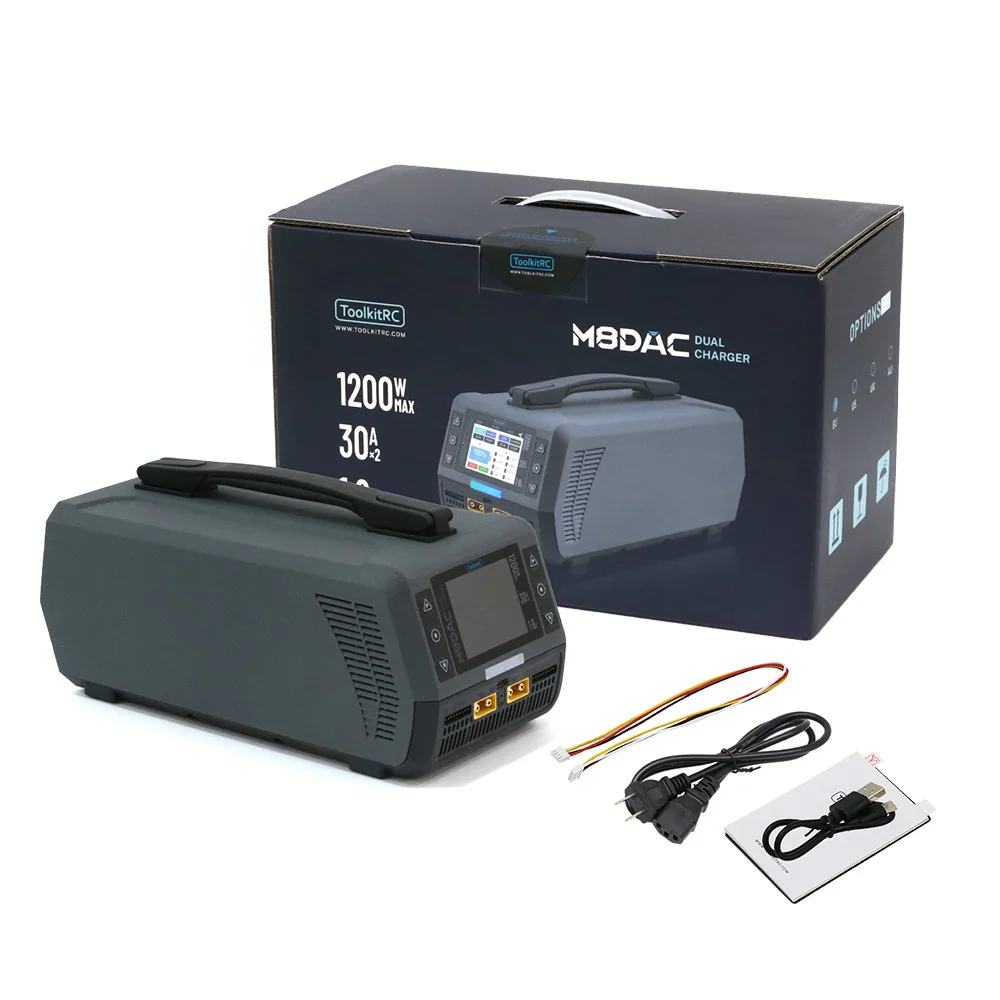 ToolkitRC M8DAC intelligent charger 2-channel 1-8S IPS display AC 1200W 50A 30A model car 1/5 1/6 1/7 fast charging