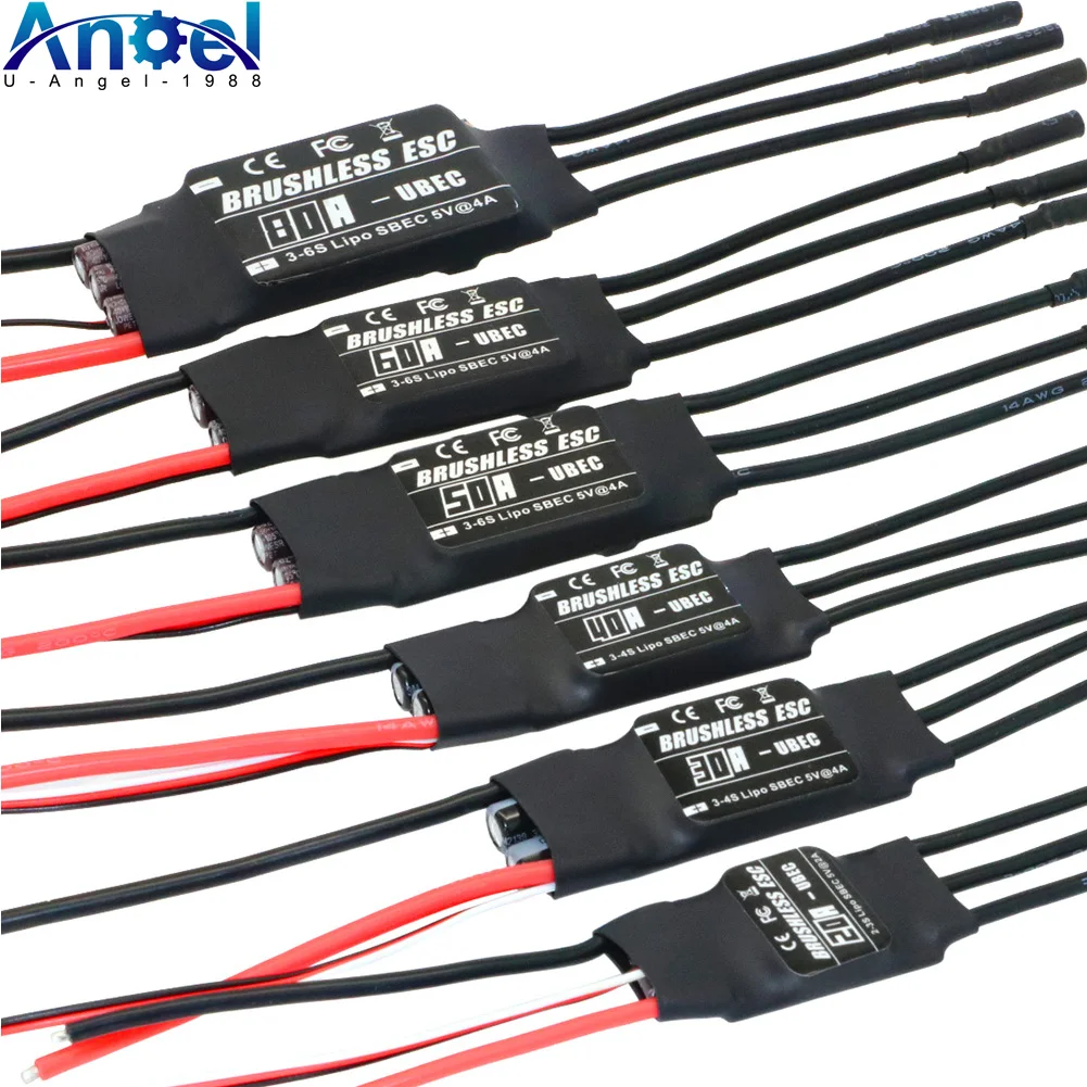 Uangel 20A 30A 40A 50A 60A 80A Drone Brushless ESC UBEC Speed Controller 2-6S Programming Card for RC FPV Plane Helicopter Part