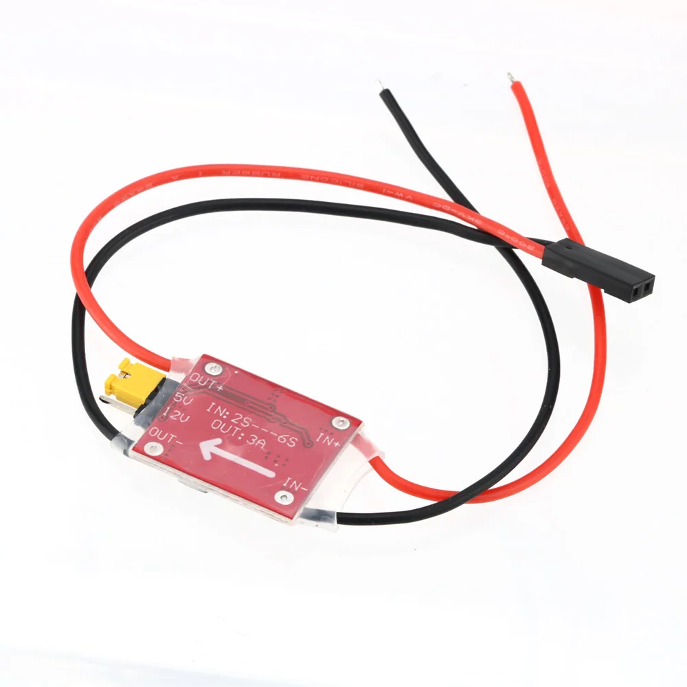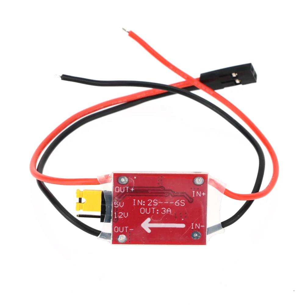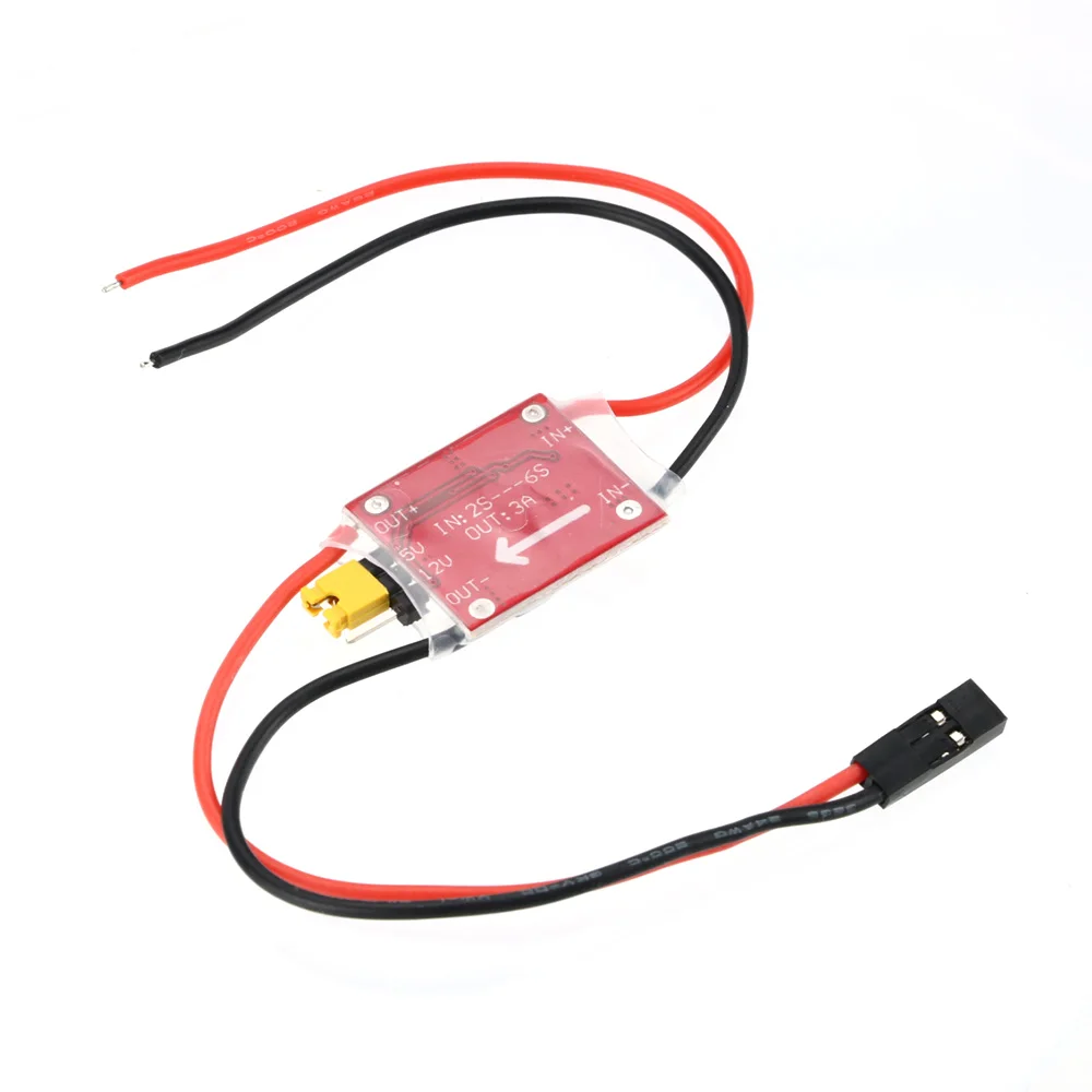 UBEC full name is Ultra Battery Elimination Circuit, is the built-in BEC from the electronic speed controller (ESC) in the independent, independent external voltage regulator, for the load to provide greater output power, and therefore also known as external BEC. UBEC to the switching mode of power (Switch Mode) The main reason for the use of UBEC is that the voltage of the input power supply exceeds the permissible range of the on-board BEC of the ESC; or the current demanded by the load exceeds the permissible output range of the on-board BEC of the ESC. The UBEC can range from 2S to 2S. This UBEC is ideal for fixed-wing and FPV use as it can obtain a DC voltage suitable for receiver and other equipment operation from a 2S-6S LiPo battery pack and stabilize up to 3A of output current to power equipment such as receivers, FPVs, and multiple servos. With this device, it is possible to obtain the power needed for the receiver directly from the power supply, eliminating the need for a separate receiver battery pack.