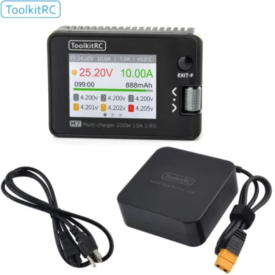 ToolkitRC M7 200W 10A Balance Charger Discharger With ADP100 for 1-6S Lipo Battery Voltage Servo Checker Receiver Signal Test